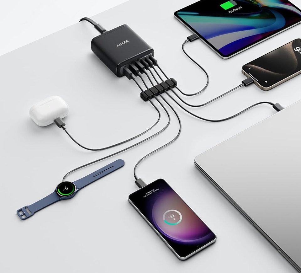anker desktop fast charger with 6 ports - 112W - dark grey - (model: A2154)
