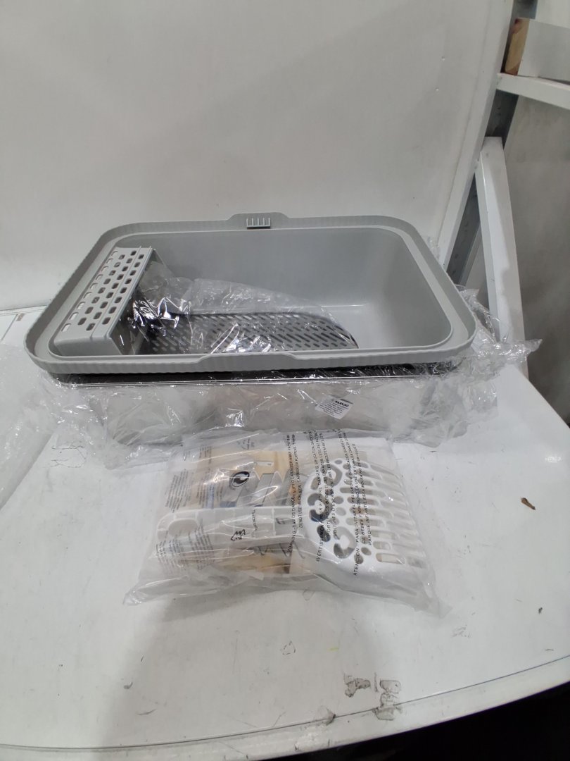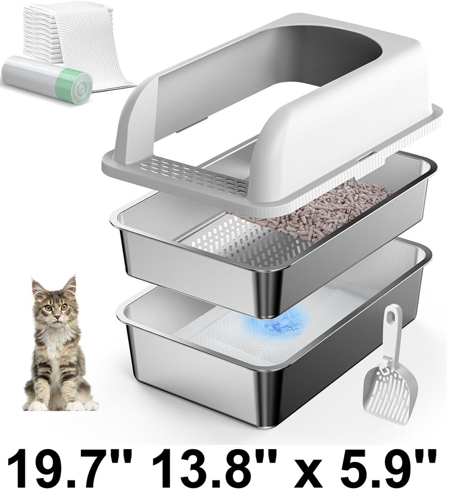 Suzzipaws Stainless Steel Litter Box with High Sides Lid Sifting Cat Box - 19.7'' 13.8'' x 5.9'' - Silver/Grey (Model:‎ CP-SLB-50)
