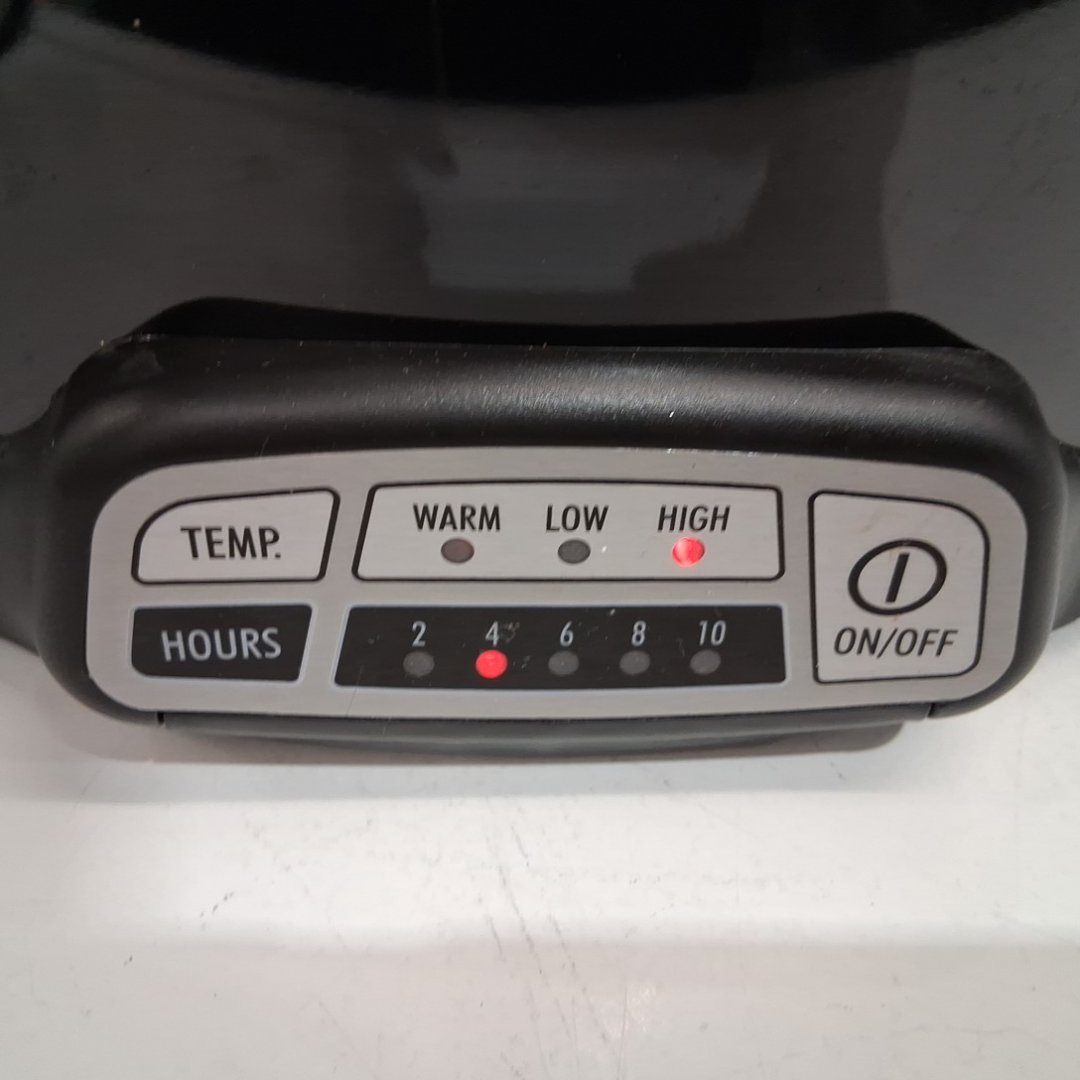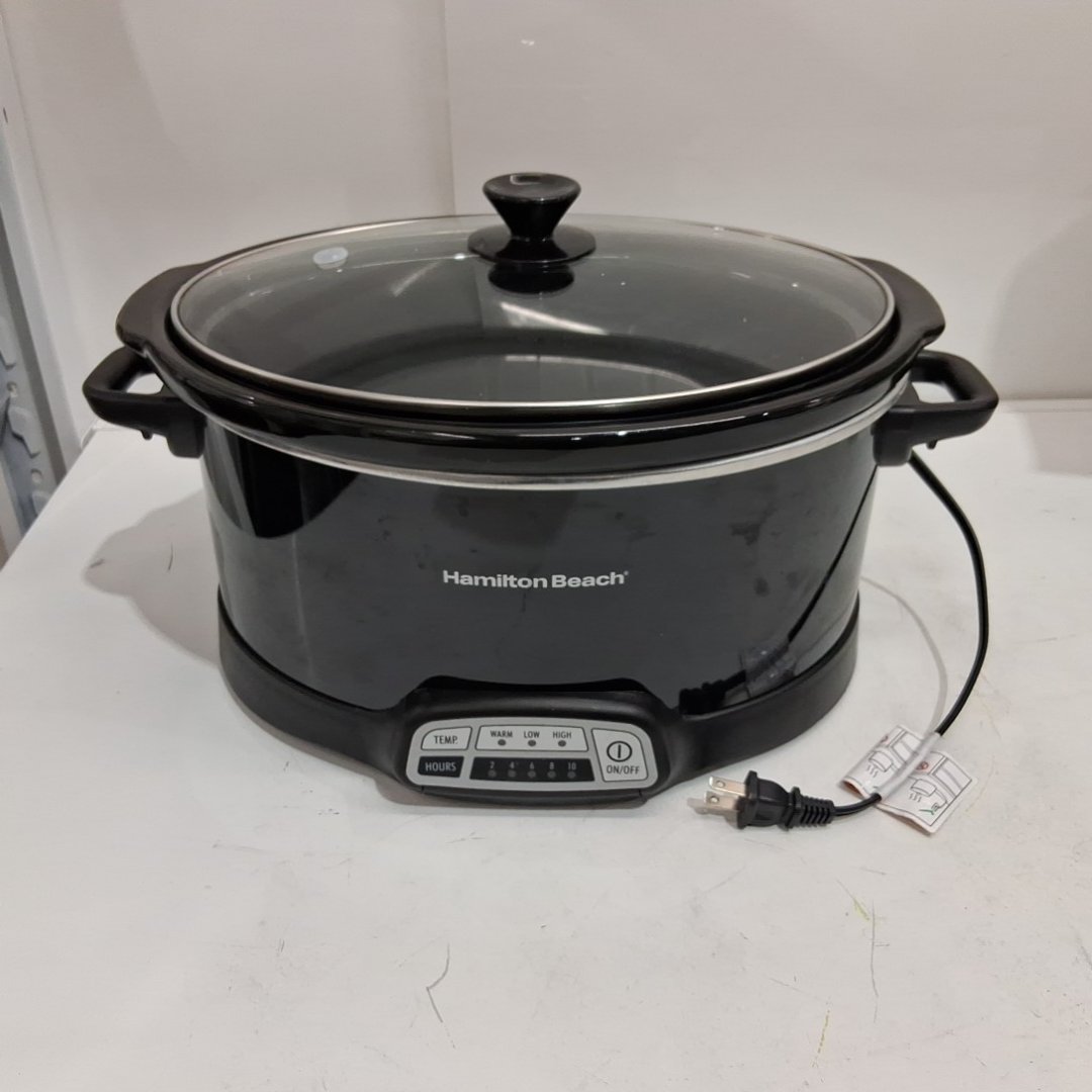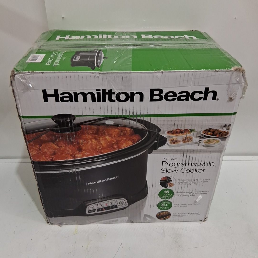hamilton beach stoneware glass programmable slow cooker with lid latch strap- 7 quart- black (model: 33474g)