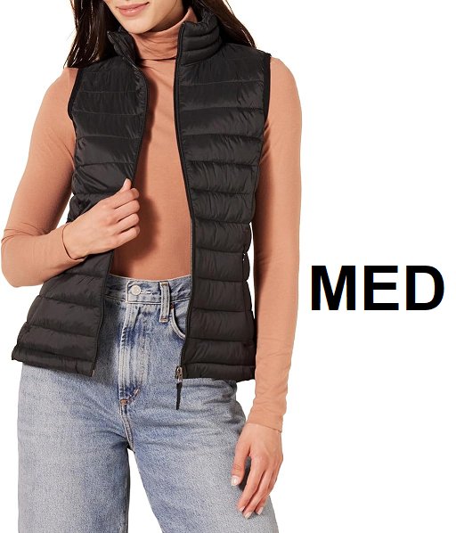 women's Amazon Essentials Lightweight Water-Resistant Packable Puffer Vest with carrying bag - medium - black