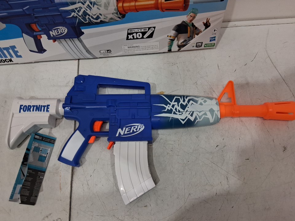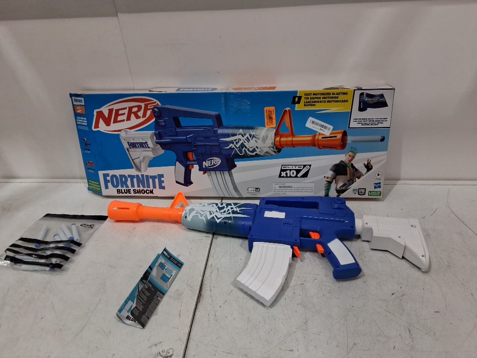 Nerf Fortnite Blue Shock Blaster - 10 dart clip - blue/white - (model: ‎F4108)