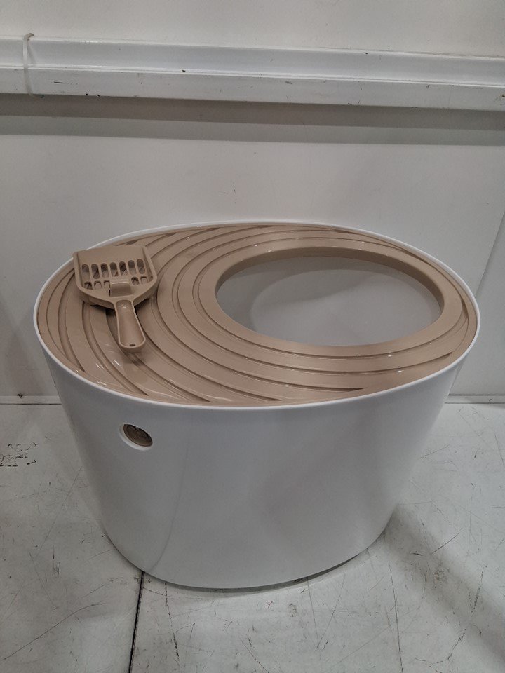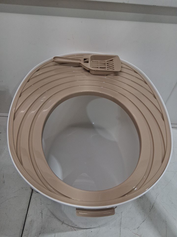 IRIS USA Large Stylish Round Top Entry Cat Litter Box with Scoop - 14.6"H x 20.5"w - white/beige (model: punt-530)