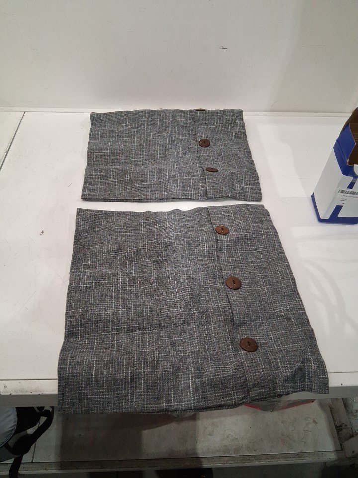 2PK Denim textured square throw pillow covers/cases with buttons - 15.5" - Grey brown