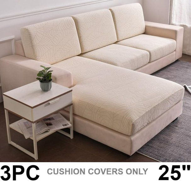 3pc L Shape Sofa Chaise Lounge Cover 25" - BEIGE