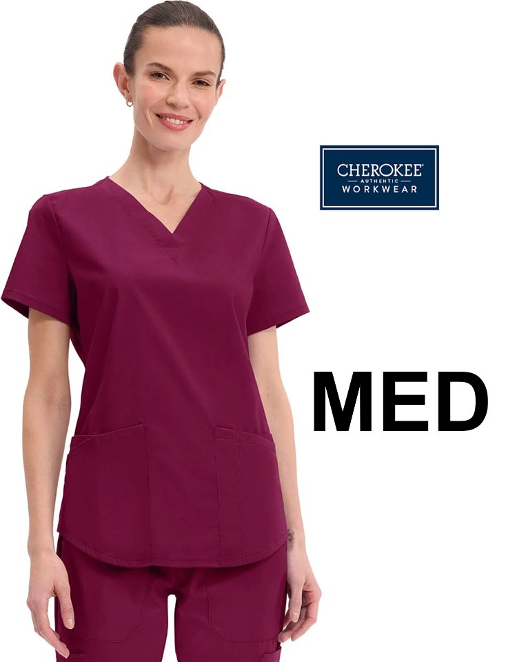 WOMENS CHEROKEE AUTHENTIC WORKWEAR SHORT SLEEVE MEDICAL SCRUB TOP - medium - maroon