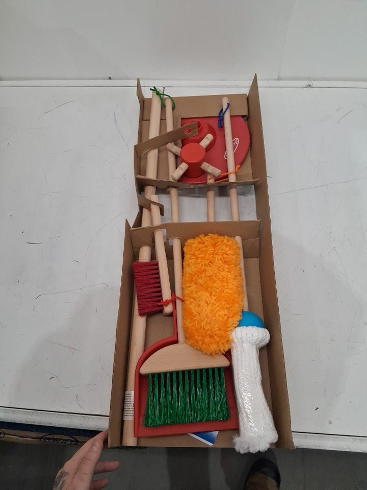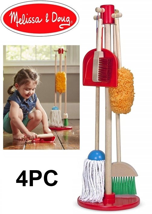 4PC MELISSA & DOUG LET’S PLAY HOUSE! DUST! SWEEP! MOP! PRETEND PLAY SET - KID-SIZED With BROOM, MOP, DUSTER, BRUSH, DUSTPAN, STORAGE STAND - MULTICOLOUR (MODEL: 96049)