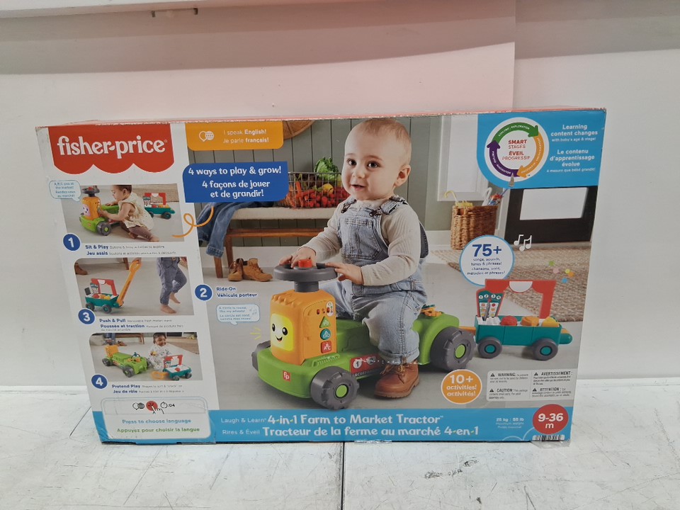 ​Fisher-Price 4-in-1 Farm to Market Tractor Ride-On with Wagon - English and french version - (MODEL: HRB88)