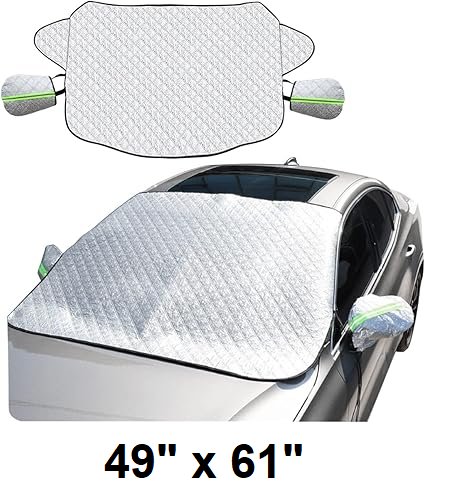TSUGAMI Car Windshield Snow Cover with Side Mirror Cover, 4 Layers Winter Frost Protection for Any Weather, Windscreen Covers - 49" x 61" - grey