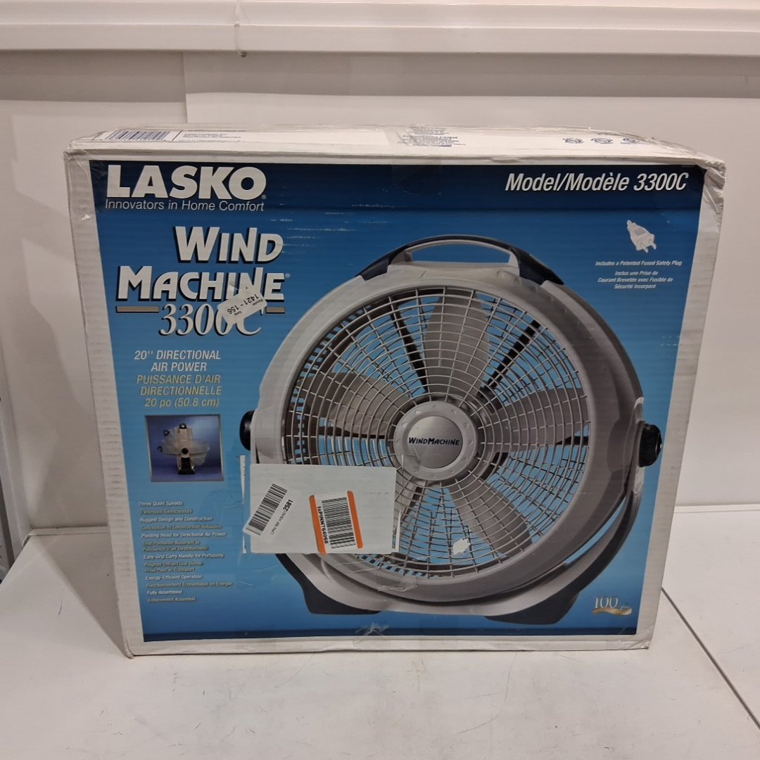 Lasko Wind Machine Pivoting Floor Fan - 3 speeds - 20" directional air power - white/black - (Model:3300c)