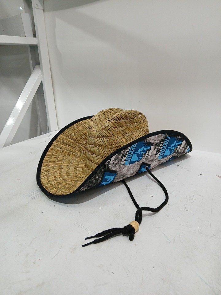 adult unisex fear factory "hell yeah brother" straw cow boy hat - osfm - blue grey natural