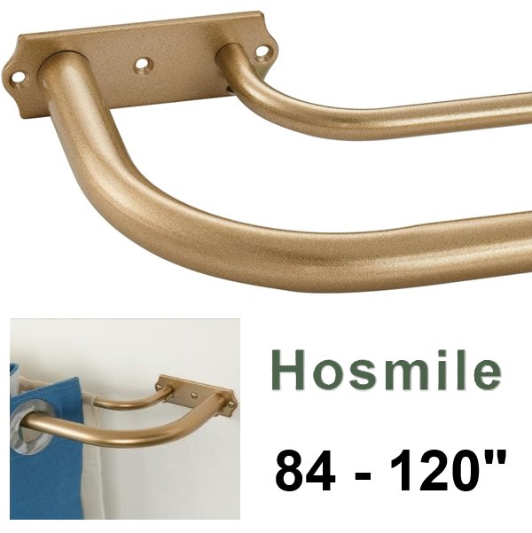 HOSMILE Antique Gold Double Curtain Rods - 84" - 120" - GOLD (MODEL: HM-102)