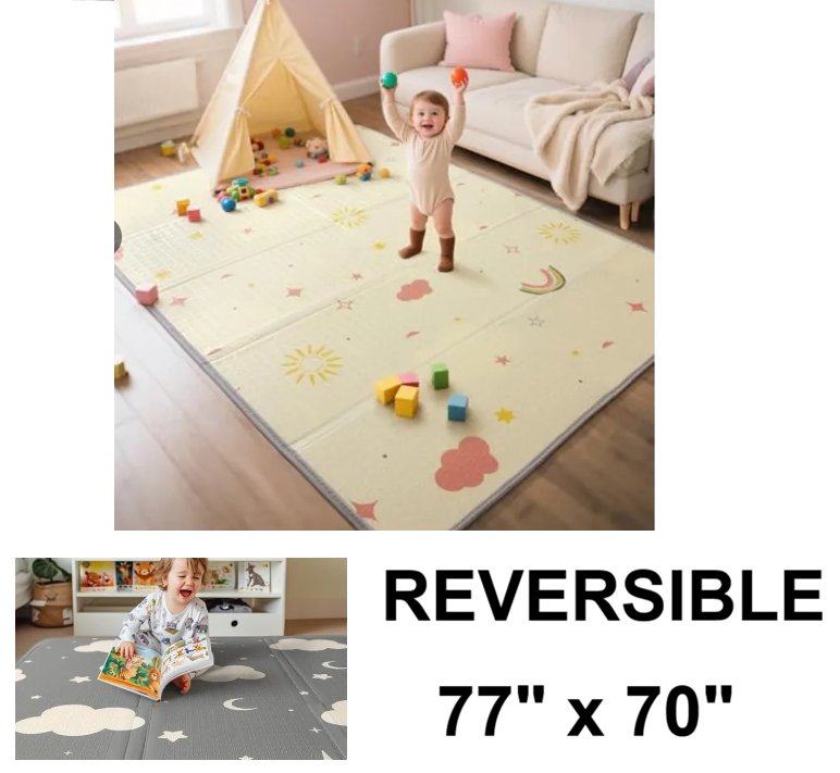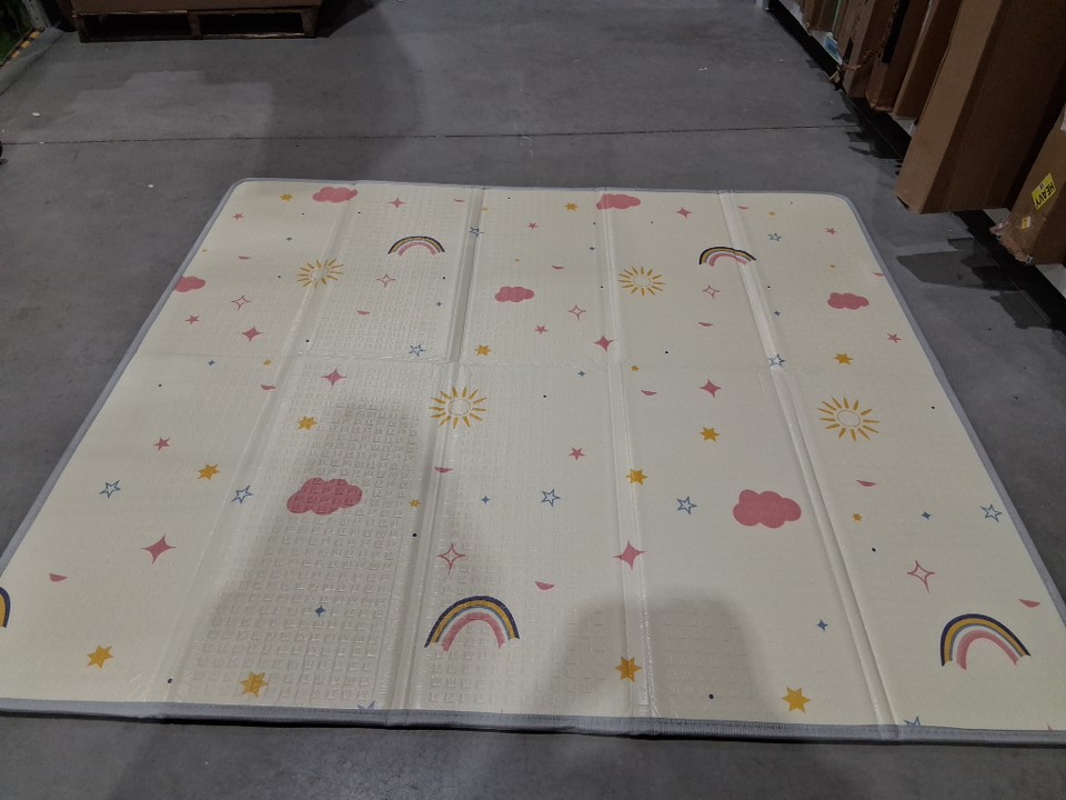 children's ningbo extra large reversible foldable play mat with storage bag- 77" x 70" - grey cloud/pink rainbow