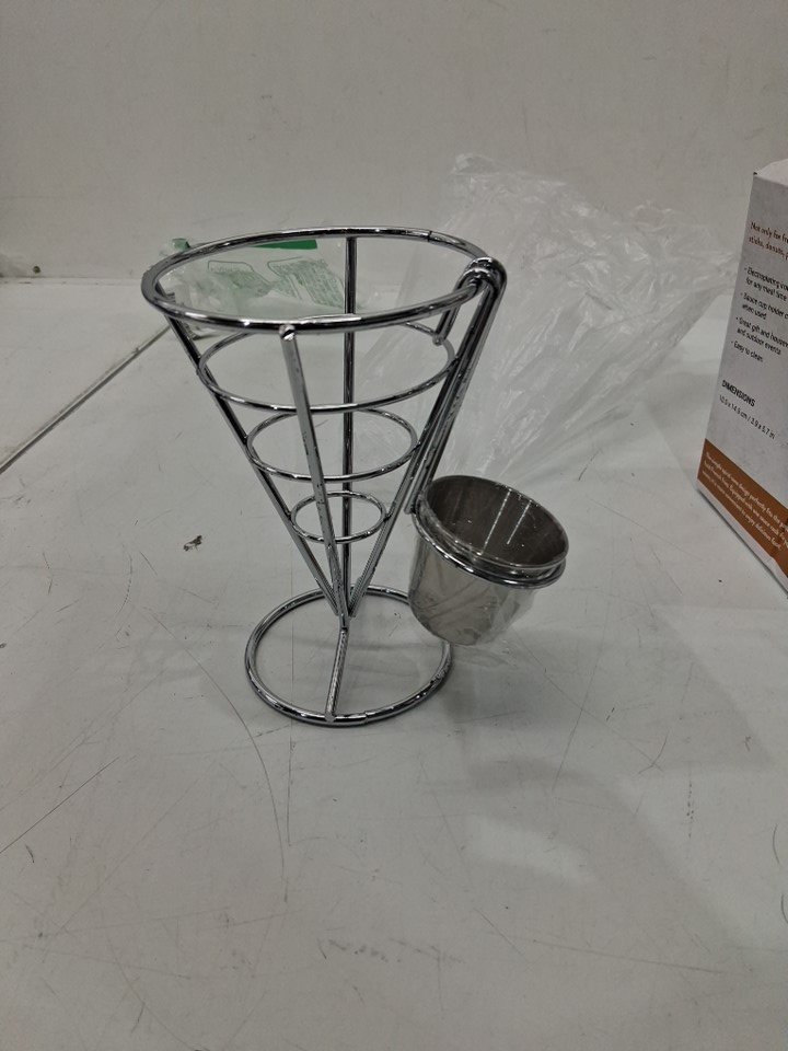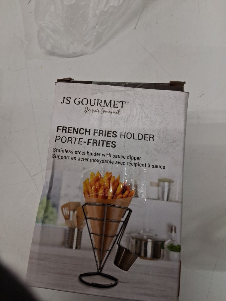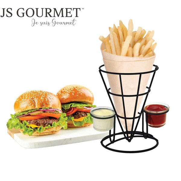 js gourmet stainless steel french fry holder with sauce holder - silver