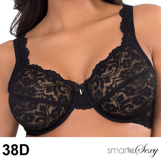 womens smart & sexy signature lace unlined underwire bra - 38d - black (style: sa85045)