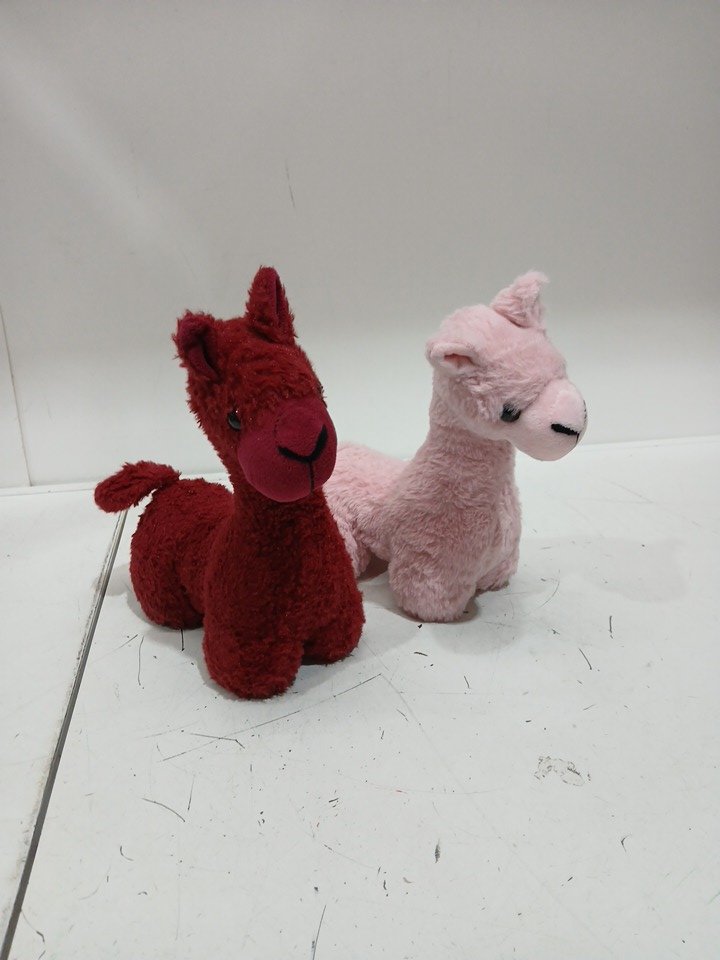 2PC STUFFED FUZZY LLAMAS - 11" - RED/PINK