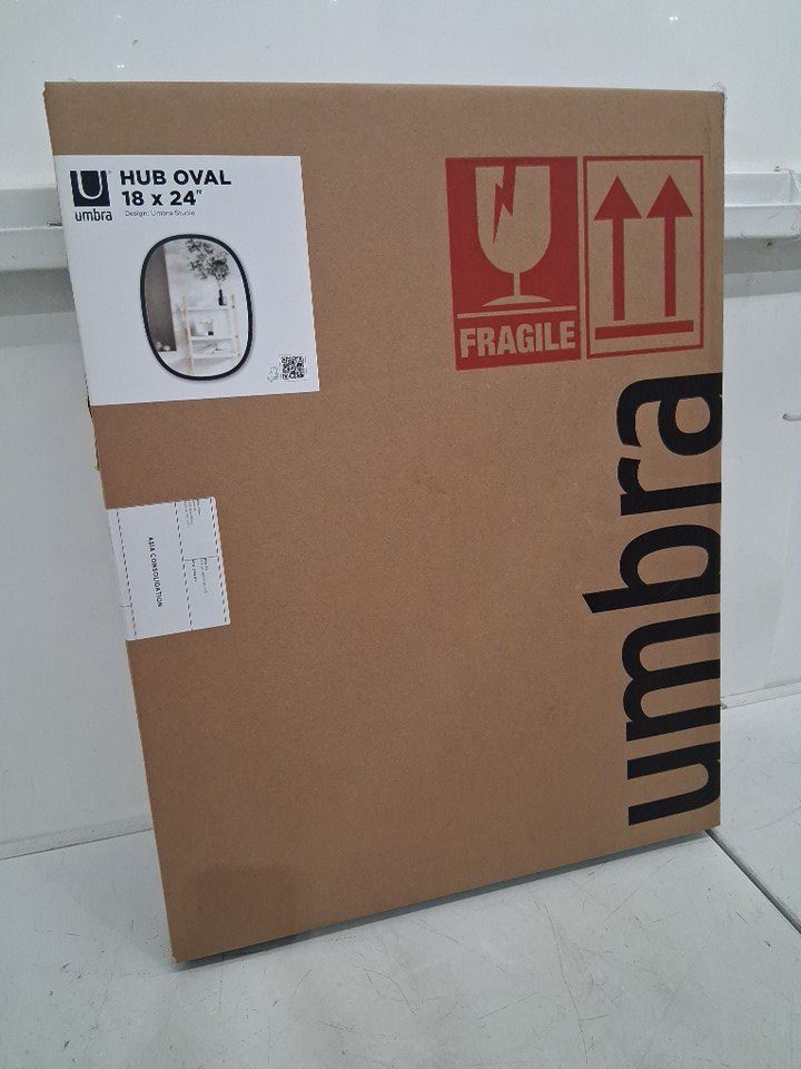 UMBRA HUB OVAL HANGING WALL MIRROR With PROTECTIVE RUBBER FRAME - 18" x 24" - BLACK (MODEL: 1013765-040-A61)