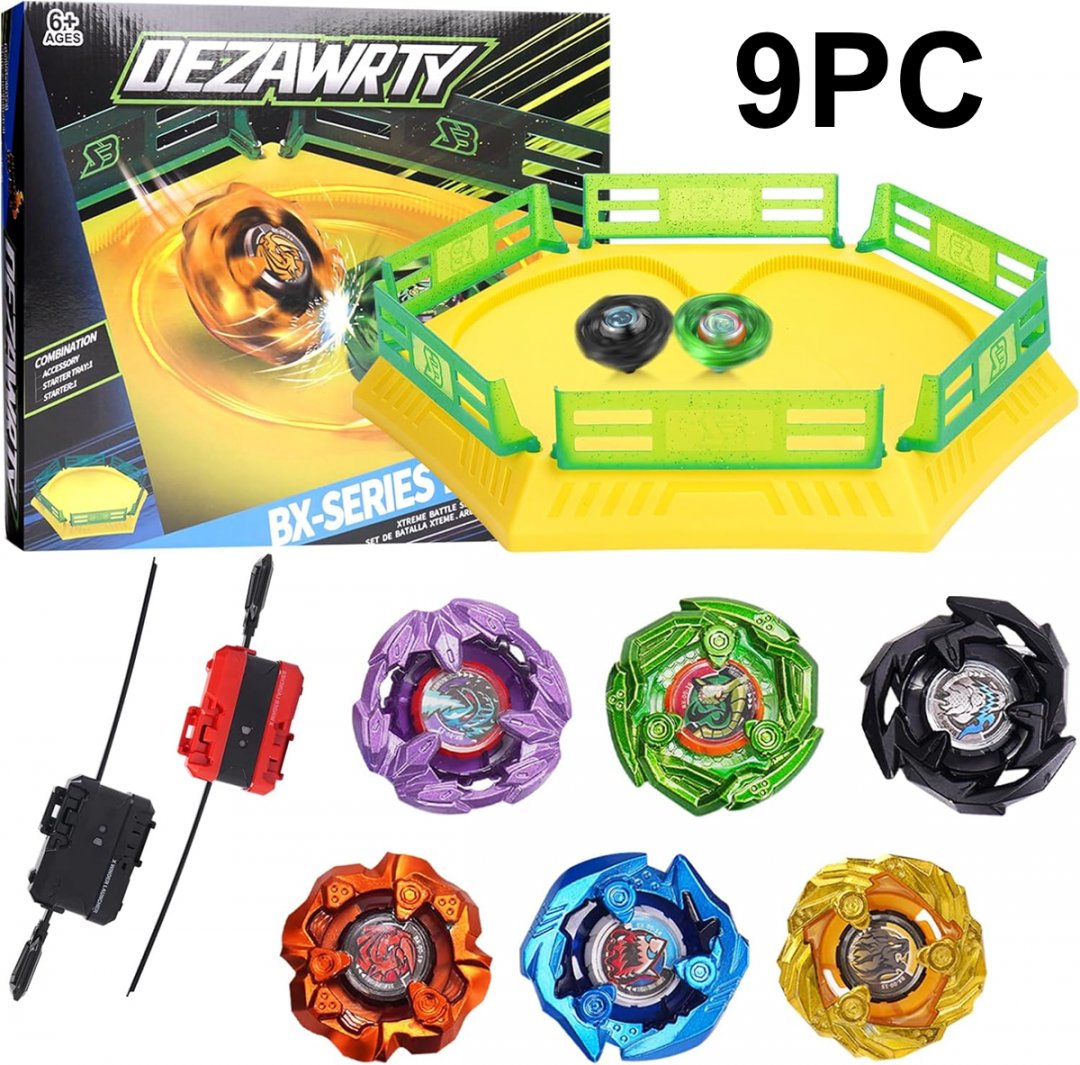 9pc Dezawrty BX series - arena, 2 launchers, and 6 gyro spinners - Multi colour