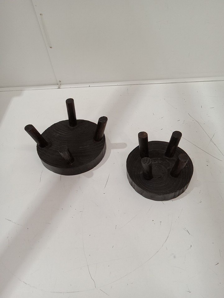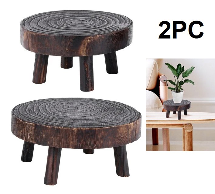 2pc wooden planter stools - 6.7" x 3.5" small stool - 7.9" x 3.5" large stool - dark brown