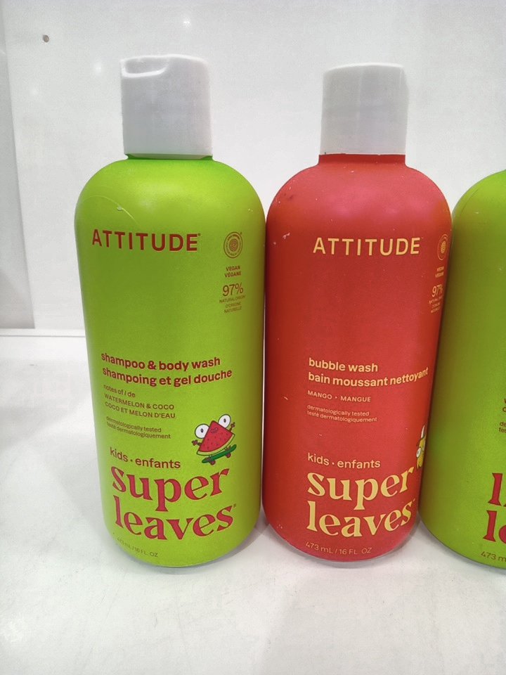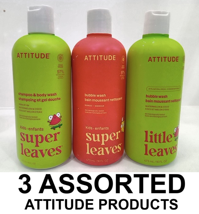 3 ASSORTED attitude products - shampoo+ body wash / bubble bath