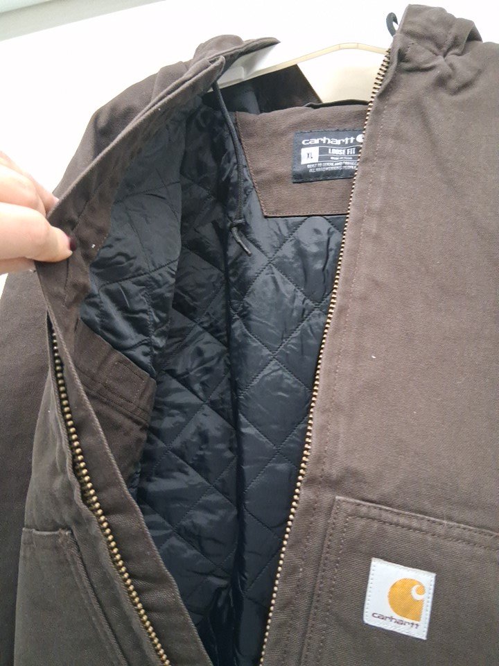 mens carhartt loose fit washed duck insulated active jacket - LARGE - brown (style: j130-m)