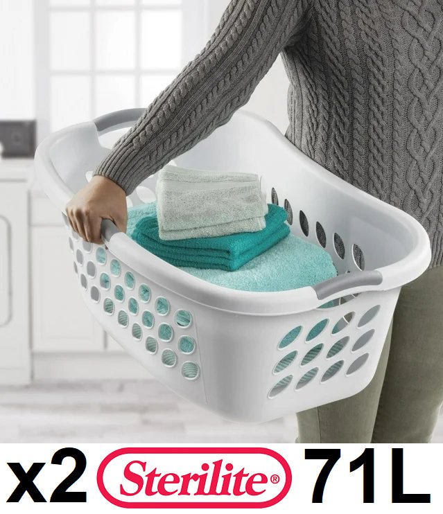 2 STERILITE hip hold laundry basket - 71l - white (model: 1218labbc-whtblc)