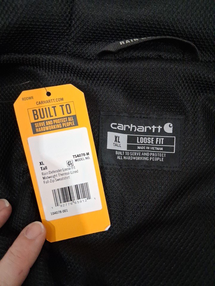MENS CARHARTT HEAVY WEIGHT RAIN DEFENDER LOOSE FIT full zip SWEATER - EXTRA LARGE tall - black (model:Ts4078-M)