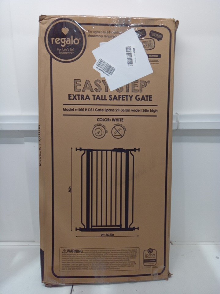 REGALO EASY STEP WALK-THRU METAL SAFETY GATE - 36" x 29" - 36.5" - WHITE - (MODEL: 1166HDS)