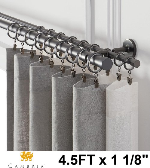 cambria designer series PREMIUM double CURTAIN rod - 4.5FT X 1 1/8" - MATTE GRAPHITE