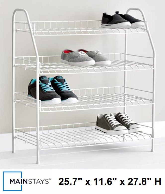 MAINSTAYS 4-TIER metal SHOE RACK - HOLDS up to 12 PAIRS - white