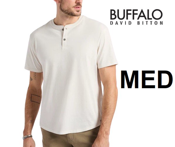 Men's buffalo david bitton Kamel Short-Sleeve Jersey Henley Top - medium - Milk/off white - (style: BM24602)