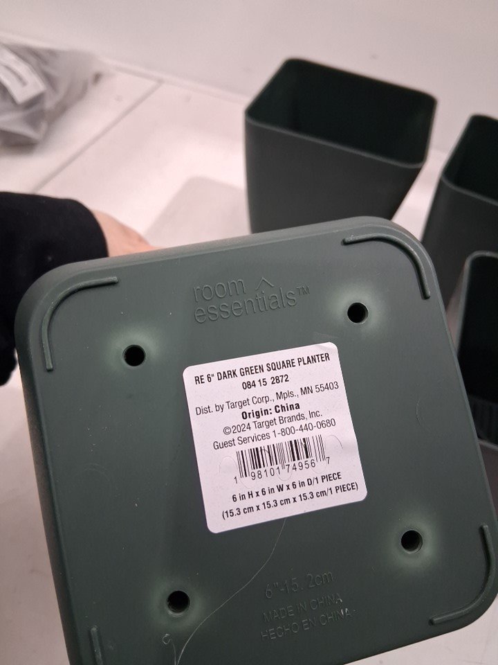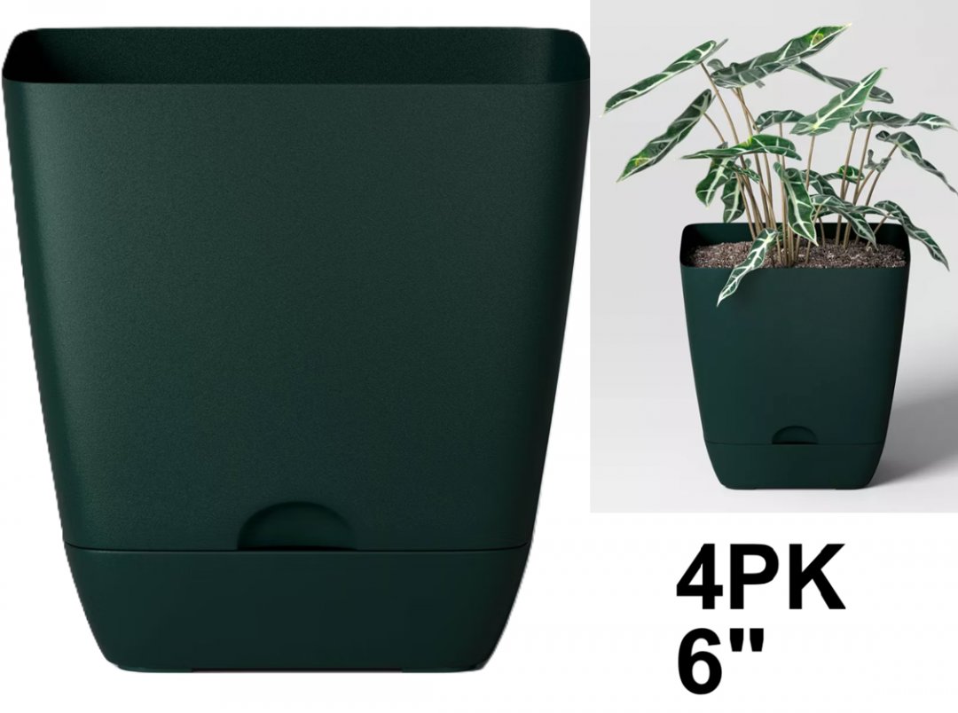 4PK Room Essentials Square Indoor-Outdoor Planter POT - 6" X 6" - GREEN