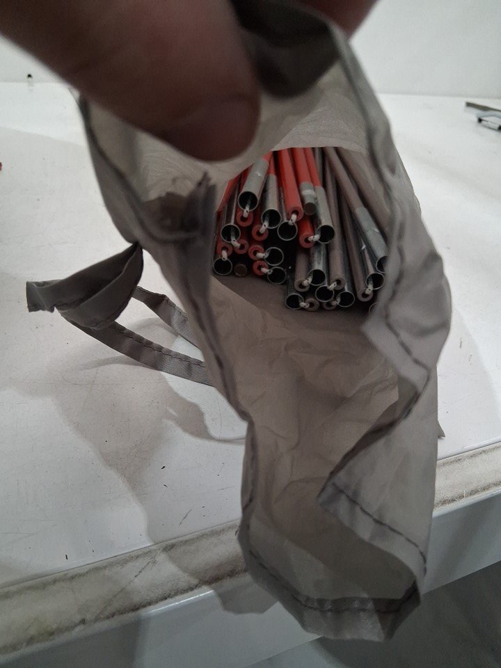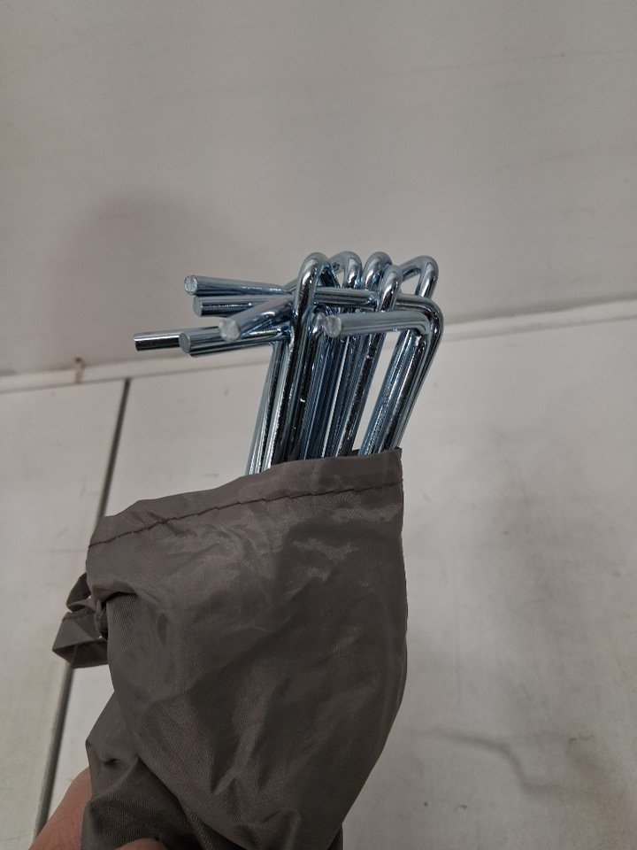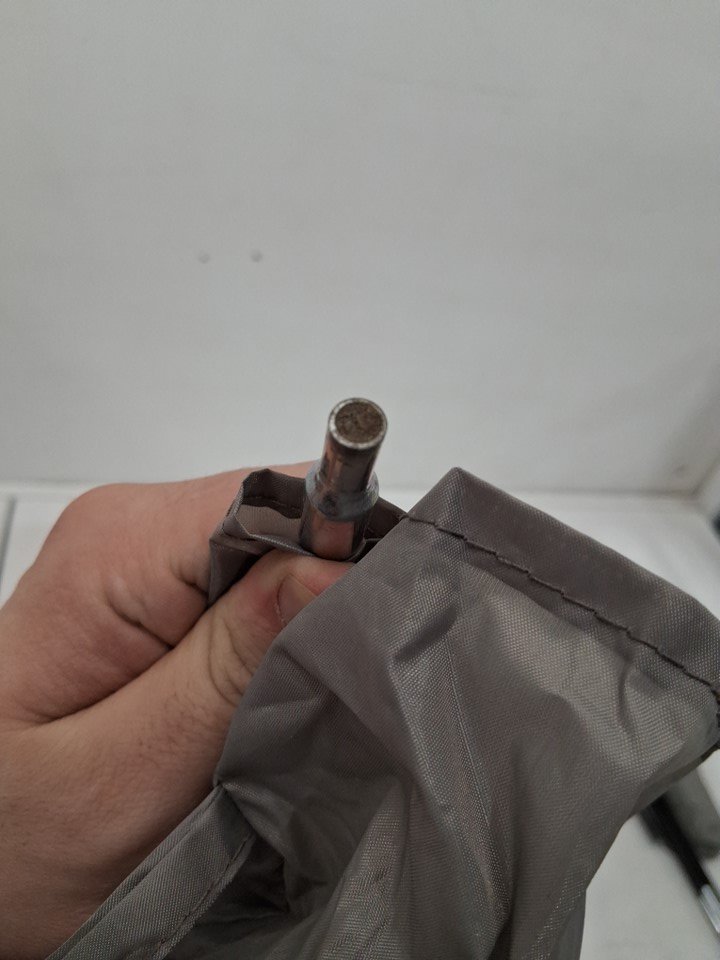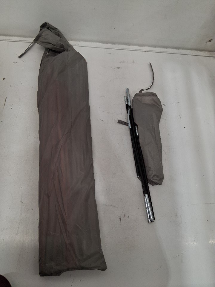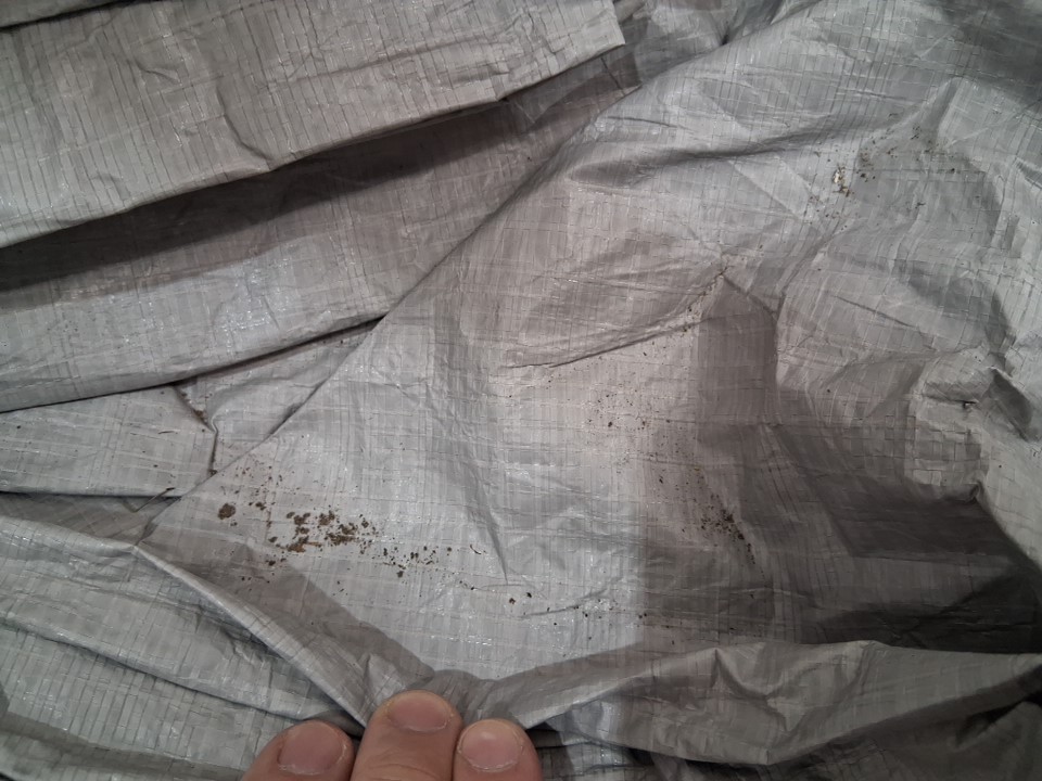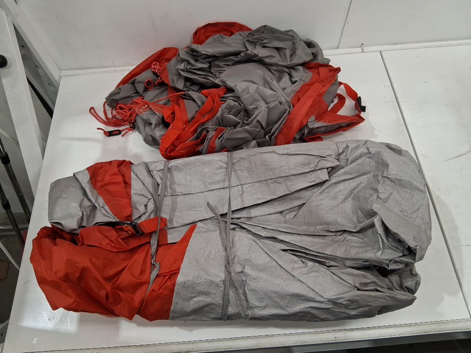There is some dirt left in the tent, on the end of the poles, and in the bottom of the storage bag indicating some previous use - see photos. Outside of this, there is no visible damage or other issues with the tent or any accessories.