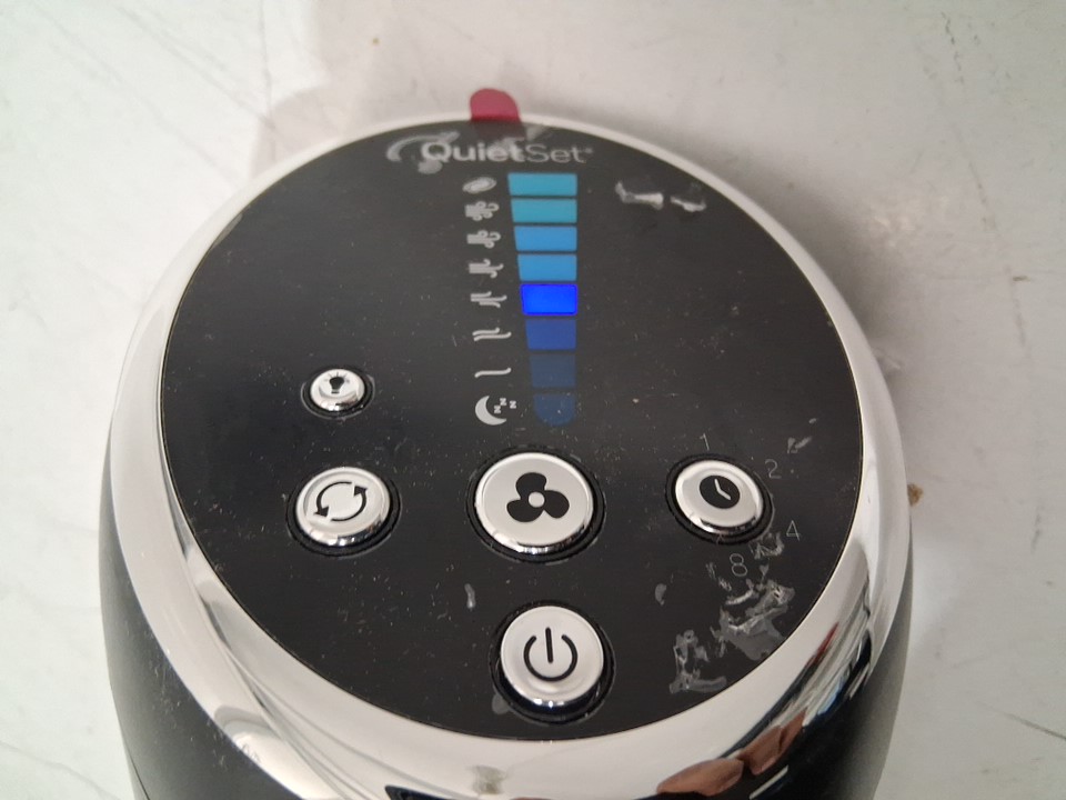 Item has scuffing/scratches and light dirt marks from previous use. The pieces joining the base are broken but can be worked around to stabilize the fan.