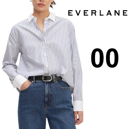 Women's Everlane the Silky Cotton Relaxed Long Sleeve Shirt - Size 00 - White/Blue