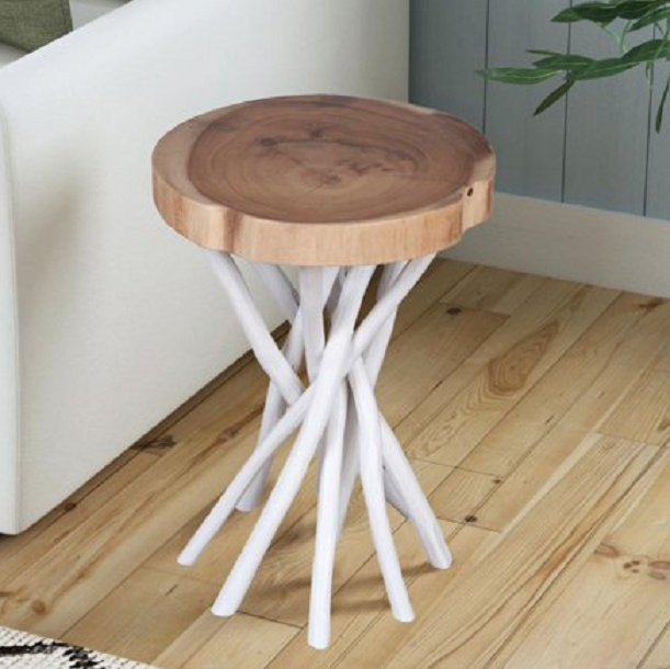 East at Main Tall Sustainable Teak Wood Accent Table 14" x 20" - white/natural (model: or-lr502-wh)