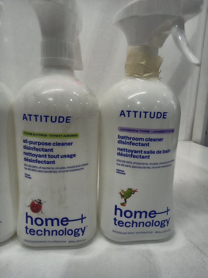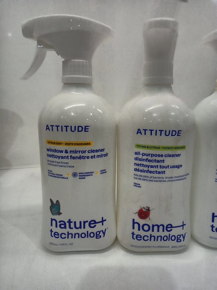 3 assorted attitude products - window& mirror cleaner/all purpose cleaner /bathroom cleaner