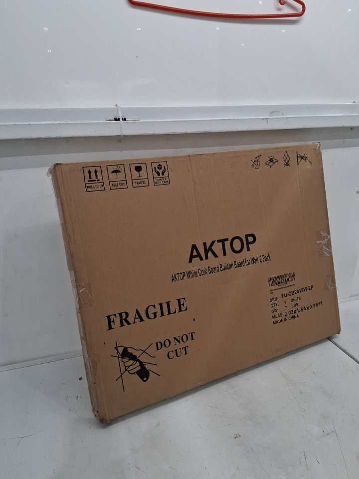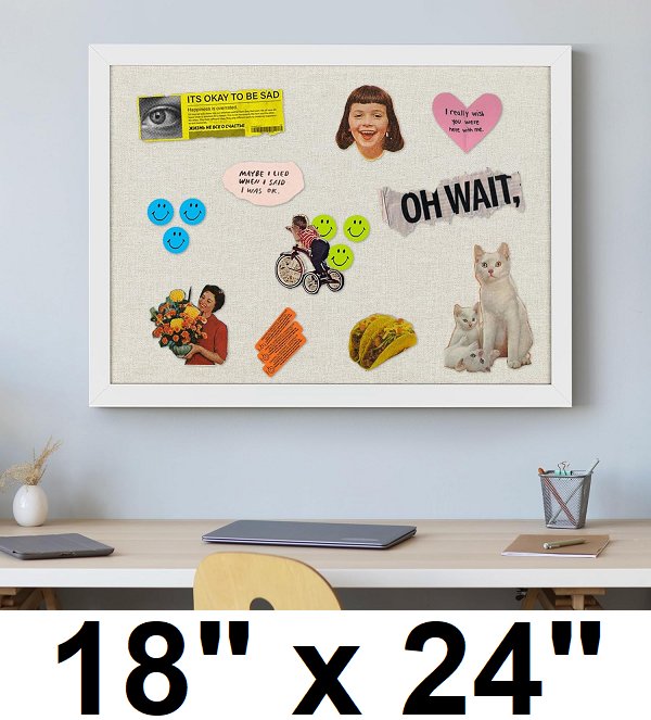 AKTOP Cork Bulletin Board with Linen - 18" x 24" - White