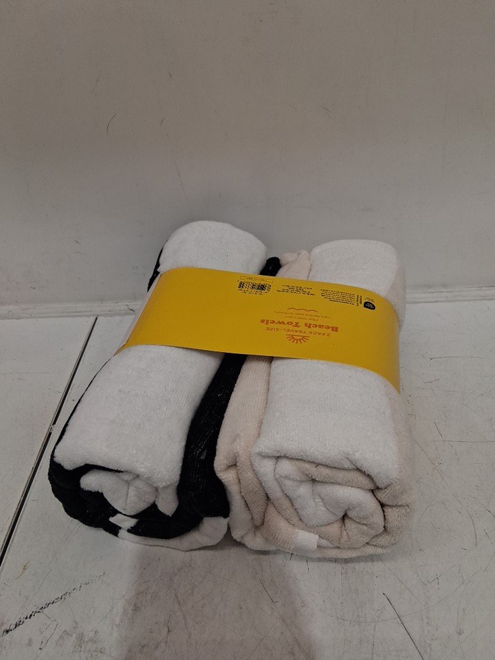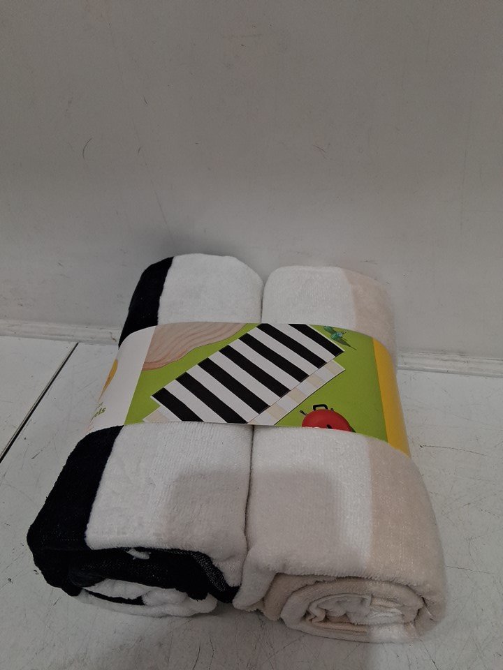 2pk sun squad travel size 100% cotton quick drying beach towels - 28" x 58" - Black/Beige/WHITE stripped