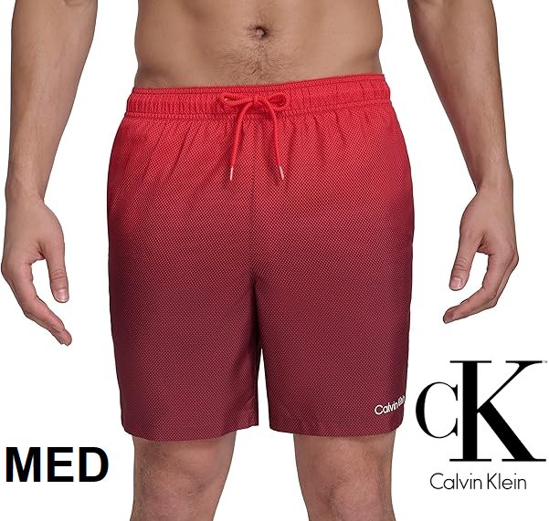 Men's Calvin Klein Volley Quick Dry Lightweight Swim TrunkS - MEDIUM - RED