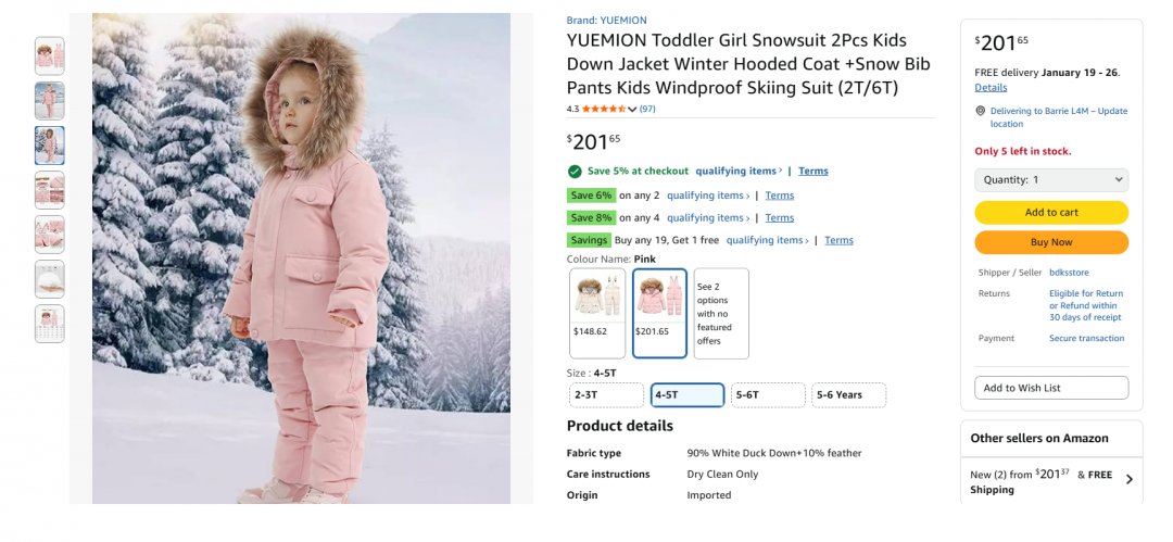 2pc yuemion kids snowsuit with winter jacket and snow pants - fits 4-5T (110) - pink