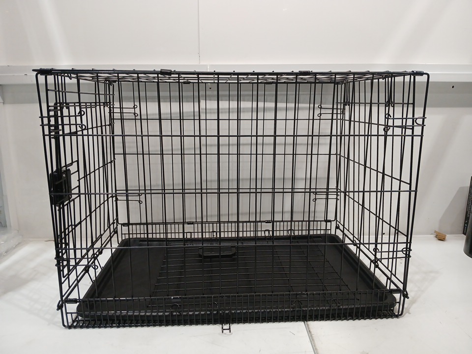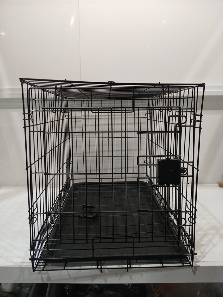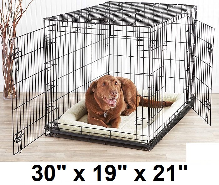 AmazonBasics Double-Door Foldable Metal Dog Crate Cage - 30" x 19" x 21" - BLACK