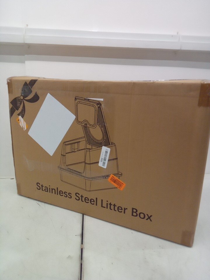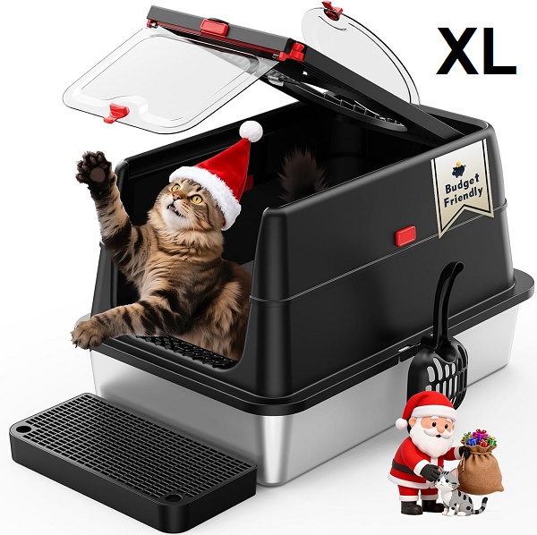 Litter Box with Flip Lid Self Cleaning and High Sided Top Entry Design - xl - black\grey