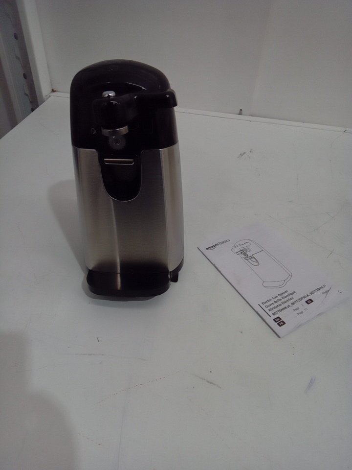 AMAZONBASICS ELECTRIC CAN OPENER WITH BUILT-IN BLADE SHARPENER - BLACK/STAINLESS STEEL (MODEL: B07T6NNKJ4)
