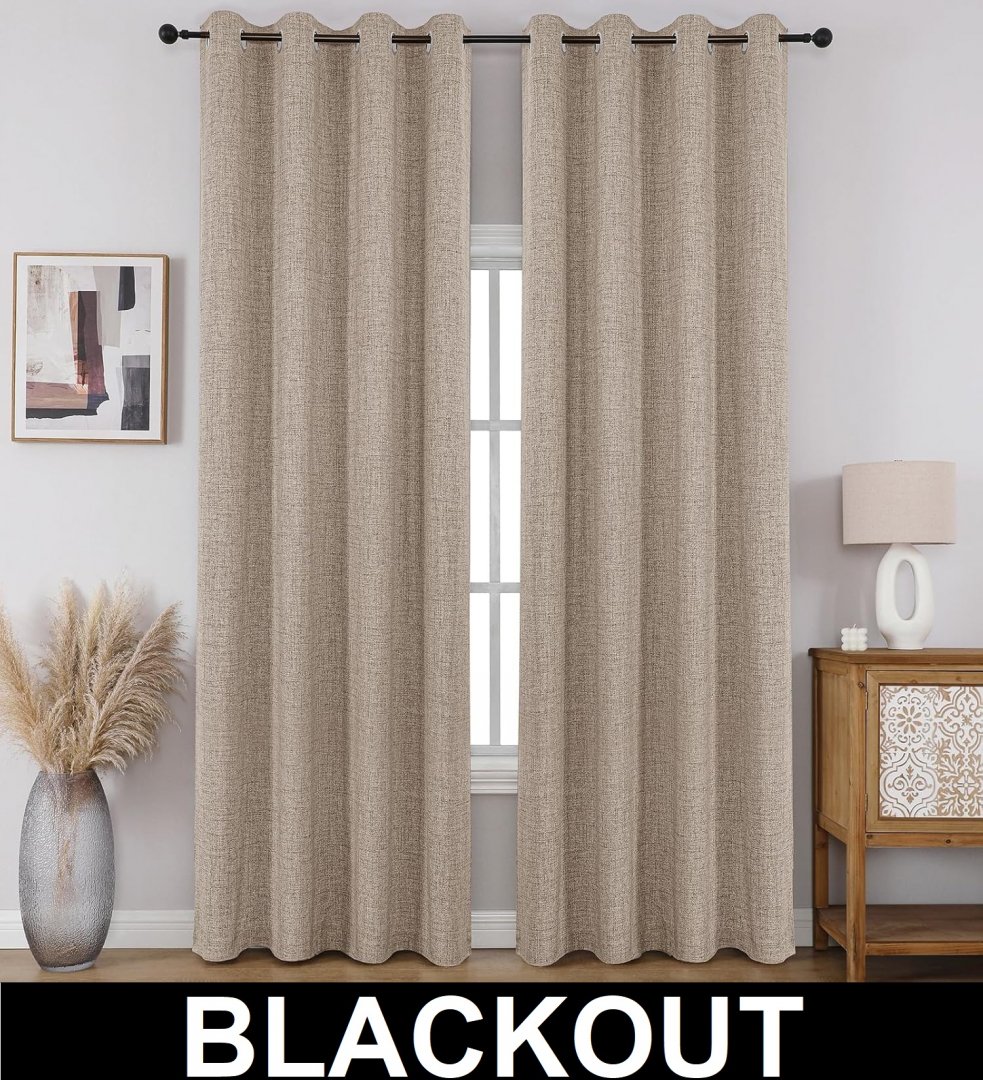 (2 PANEL) CUCRAF 100% Blackout Window Curtains Faux Linen Look Thermal Insulated Grommet Drapes - 52" x 84" - beige