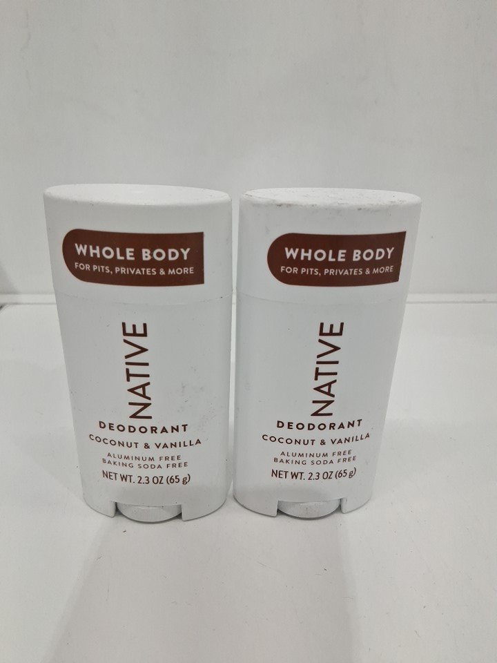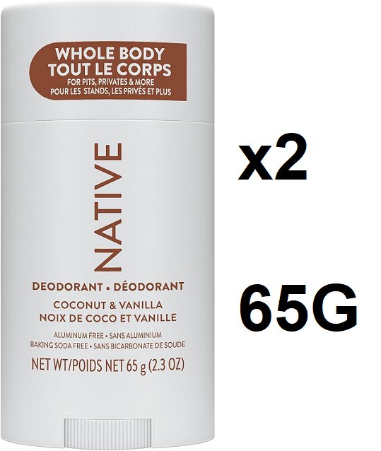 2 native whole body deodorant, aluminum free - 65g each - coconut & vanilla