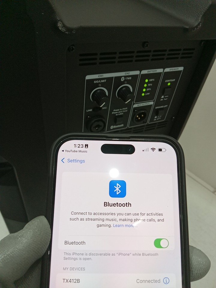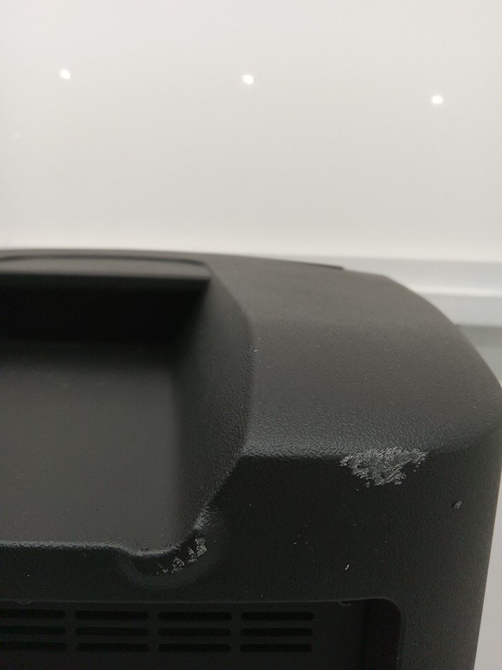 Please note that there is a crack in the top-left corner and plastic peeling on the top. The crack does not affect the sound quality. There are scratch marks on the sides and base due to previous use. Tested for power and sound through Bluetooth connectivity. (Please see photos)