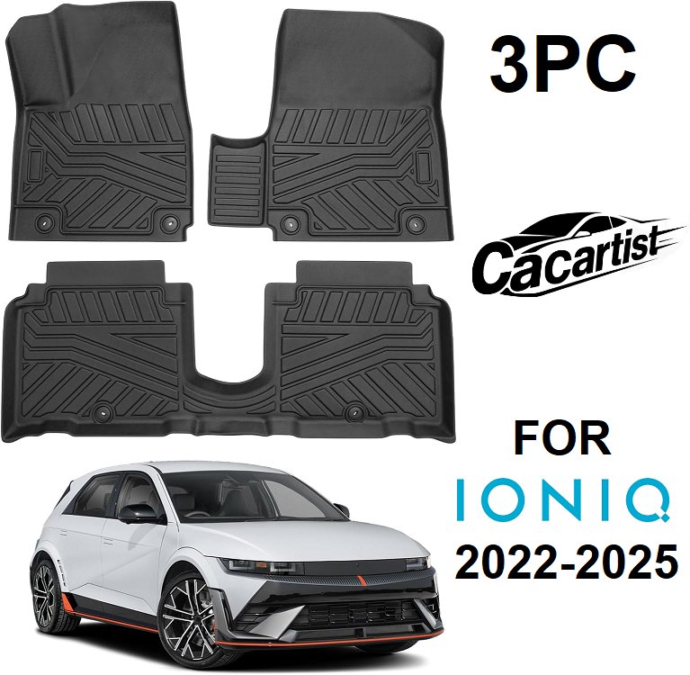 cacartist Floor Mats liners Custom Fit for hyundai IONIQ 5 (2022-2025) - 3D All Weather 1st and 2nd Row, Heavy Duty, Waterproof - black