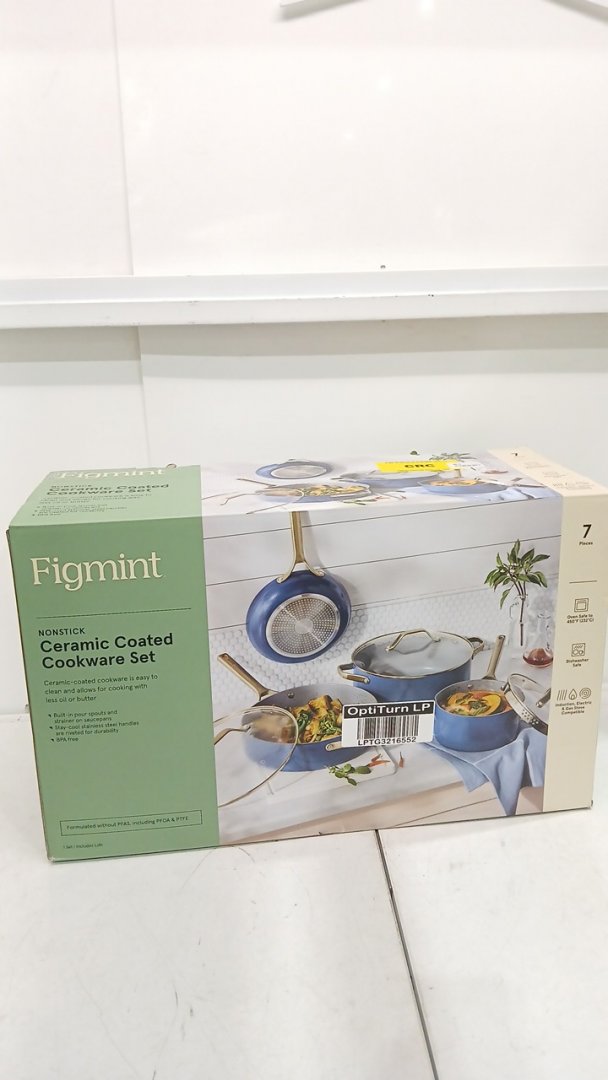 7PC FIGMINT non stick ceramic cookware set - BLUE/gold