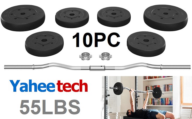 10PC YAHEETECH ADJUSTABLE OLYMPIC CURL BAR BARBELL SET - 55LBS (MODEL: 610638)
