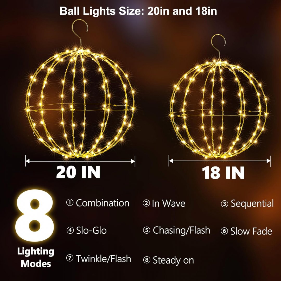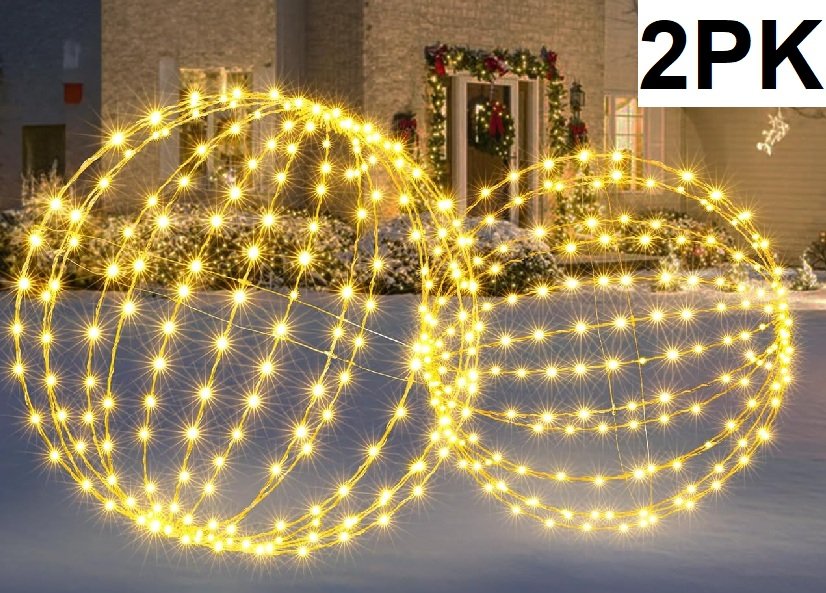 2pk joomer waterproof Foldable Metal hanging Sphere Lights - 20"/18" - warm white